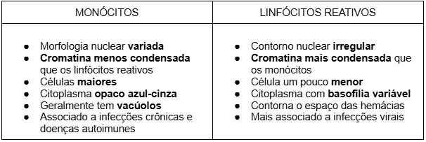A diferenciação entre monócitos e linfócitos reativos em esfregaços sanguíneos pode ser um desafio considerável, especialmente para analistas clínicos com menor experiência. Embora essas células compartilhem algumas semelhanças morfológicas, elas desempenham funções distintas no sistema imunológico. Assim, a identificação precisa pode exigir uma análise mais atenta das características nucleares e citoplasmáticas, sempre correlacionada ao contexto clínico do paciente para garantir uma interpretação diagnóstica confiável.